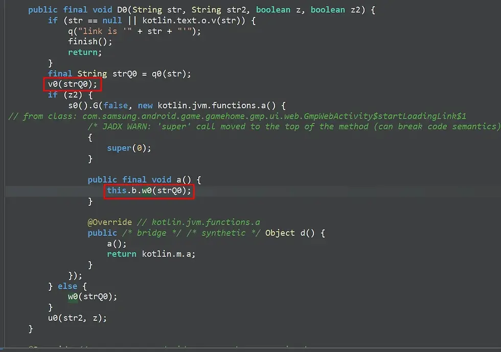 WebView-da URL injekshni (com.samsung.android.game.gamehome)